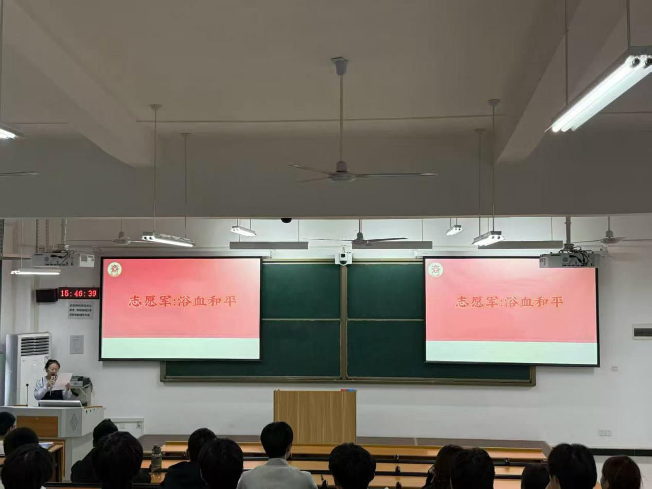 影片放映前,商学院学工党支部党员教师吴淼结合历史背景作专题讲解。她从抗美援朝战争切入,解读“747天停战谈判”的战略意义,点明上甘岭战役对国家尊严的捍卫,并强调志愿军“钢少气多”的信念是真实历史的缩影,为观影筑牢认知基础。