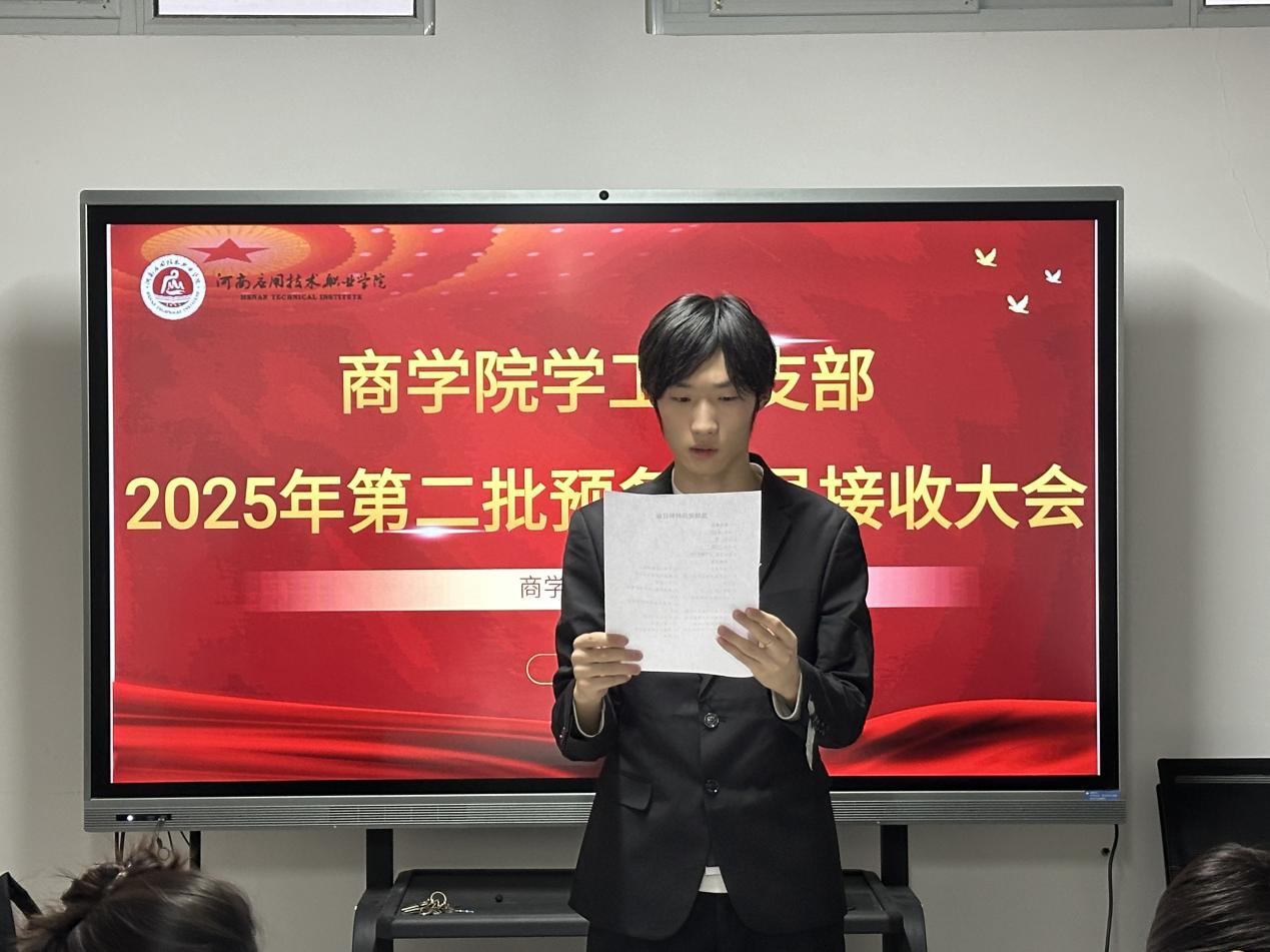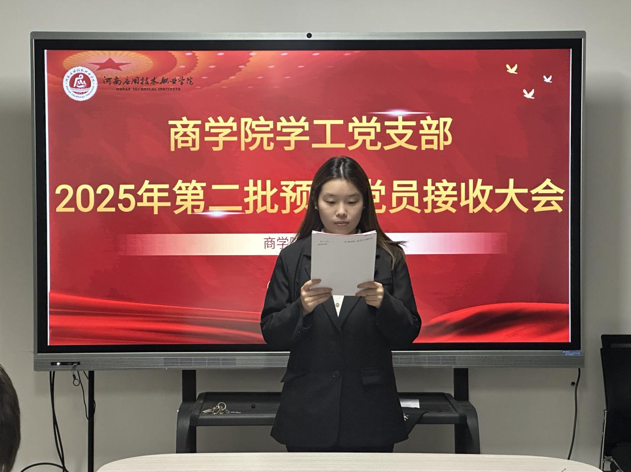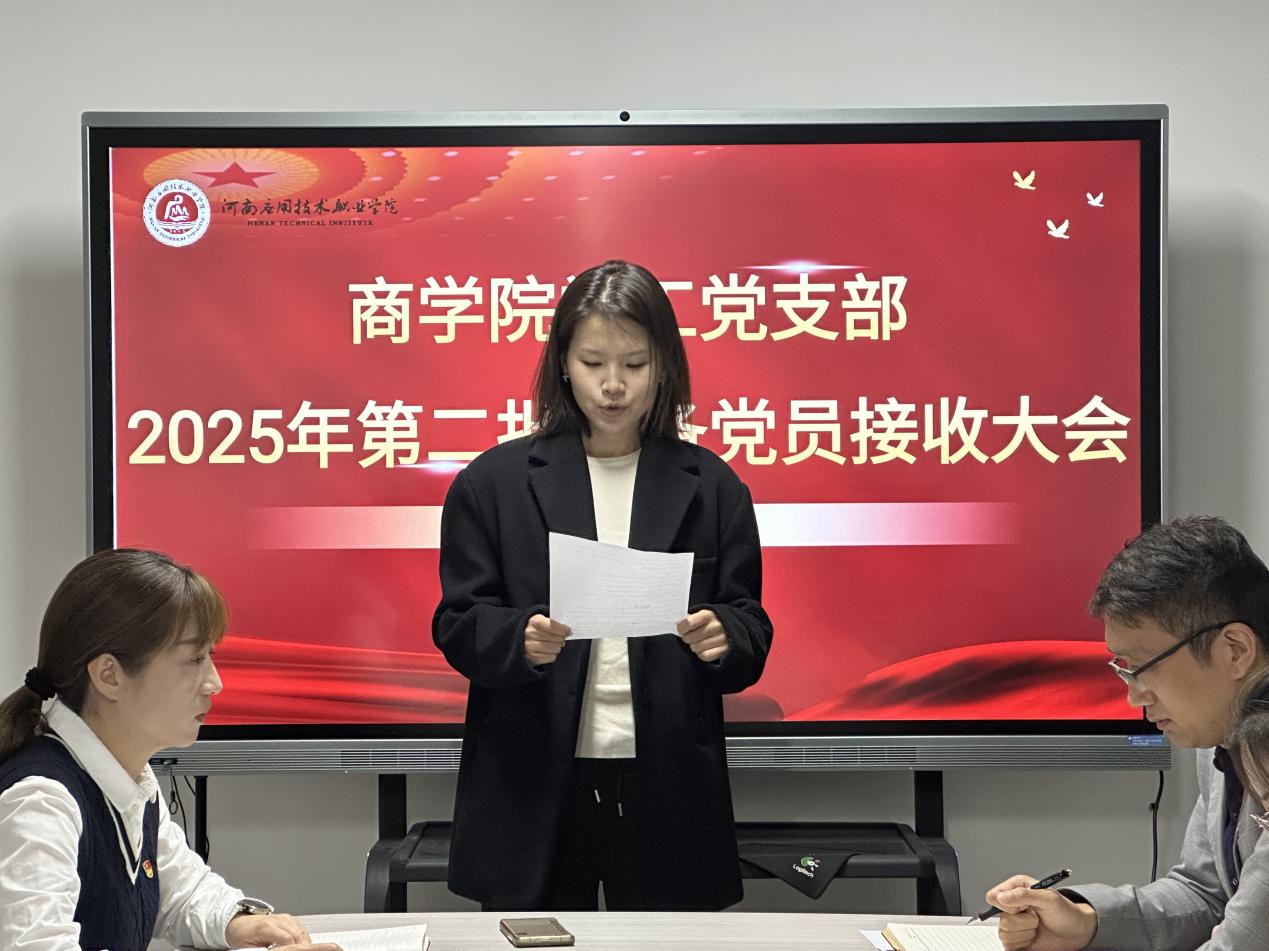 为规范党员发展程序,筑牢党员队伍建设根基,严格落实党员发展规范流程。11月14日,商学院党总支学工党支部召开2025年第二批预备党员接收大会,讨论关于发展对象董会等9名同志入党问题。商学院党总支书记荆伟科及学工党支部全体党员教师参加,会议由商学院学工党支部书记王倩主持。