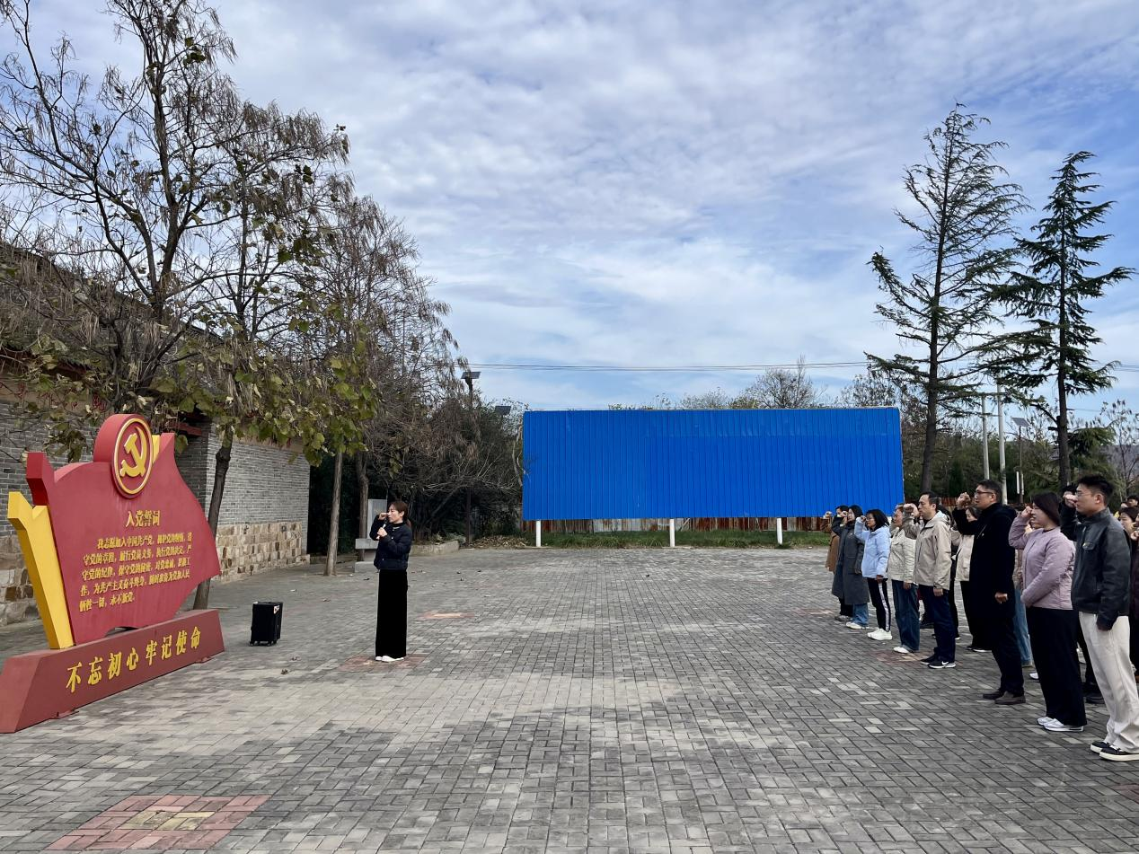 党员们赴登封徐庄,走进河南(豫西)抗日根据地纪念馆——徐庄镇教学点。作为全国十九个抗日根据地之一的核心旧址,这里以保存完好的革命遗迹与展陈,还原了豫西军民抗战的峥嵘岁月,党员们在泛黄史料中触摸烽火历史,在“缅怀王树声大将”的事迹分享里体悟先辈赤诚,随后齐唱红歌、重温入党誓词,铿锵誓言让革命精神的火种在心中重燃温度。
