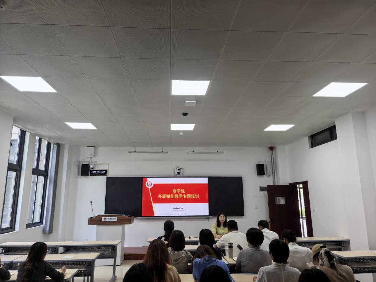 2025年9月30日,商学院组织开展了AI赋能教学专题培训,旨在深入贯彻教育数字化转型要求,帮助教师掌握AI 技术在教学场景中的实用技能,提升教学创新能力。本次培训由商学院党政办公室主任刘嘉慧主持,全体专兼课教师参与。