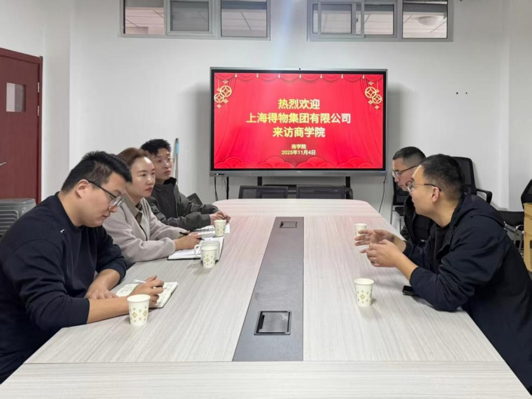 2025年11月4日,上海得物信息集团有限公司到访商学院,双方围绕人才培养、实习就业、资源共建等核心议题,聚焦校企协同育人展开深入洽谈,为深化产教融合注入新动能。商学院院长王珂及相关教师参与会谈。