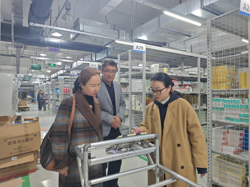 会后,在企业工作人员的引导下,师生一行实地参观了九州通智能化物流中心、自动化分拣设备、智能仓储管理系统等先进设施,让师生直观感受了智慧物流的高效运作模式,对行业技术发展趋势有了更深刻地认知。