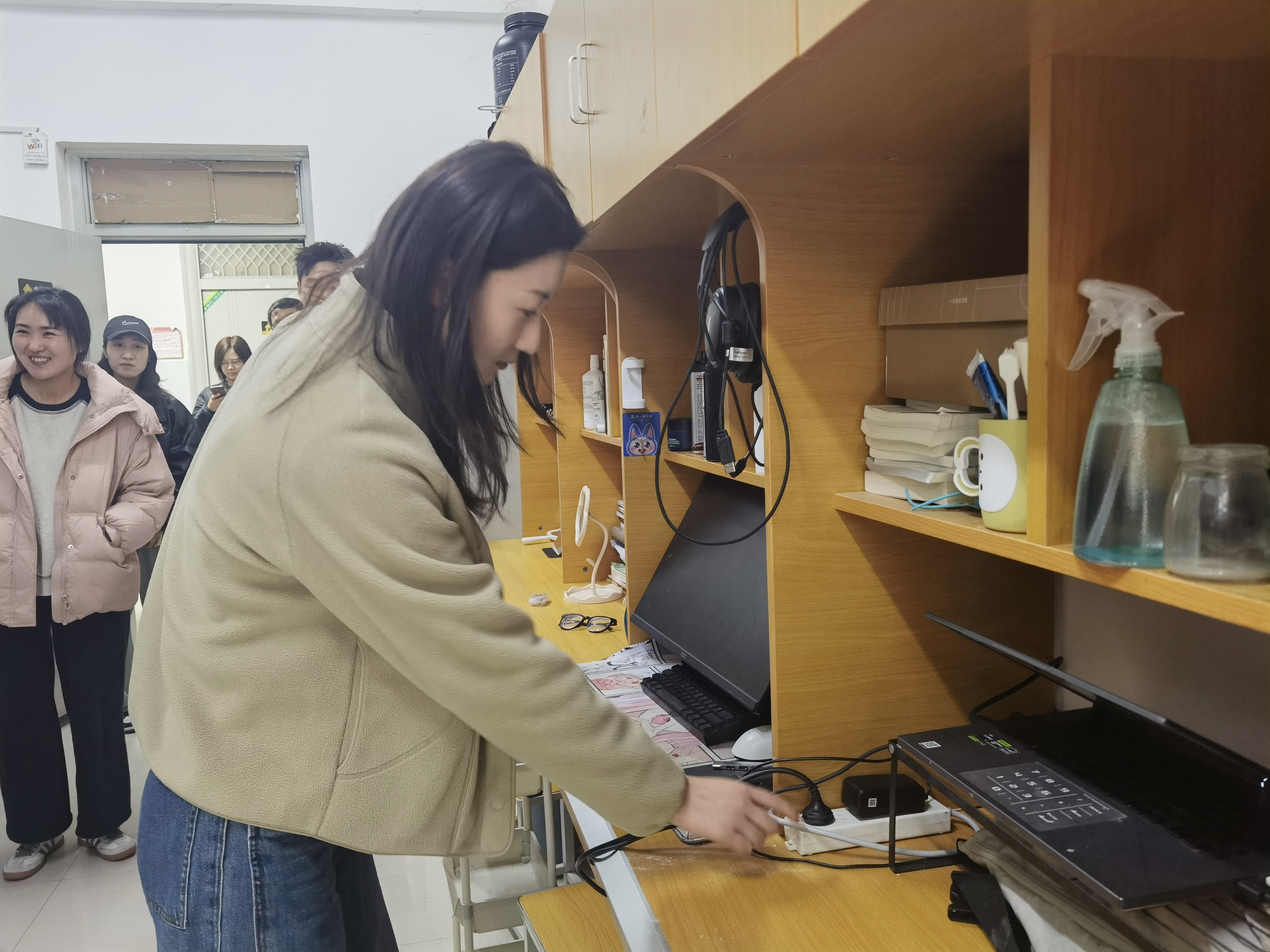 荆伟科一行重点围绕大功率违规电器使用、私拉乱接电线、插线板充电过载、易燃易爆物品存放等安全隐患展开细致检查,同时核查宿舍楼道内消防通道畅通情况,以及应急照明设施是否完好。排查过程中,荆伟科与辅导员们仔细查看电路老化程度、电器使用合规性等情况,向学生反复强调“人走灯灭、人走断电”的安全准则,引导学生从思想上重视消防安全,主动树立自主防范意识,提升自我安全管理能力。