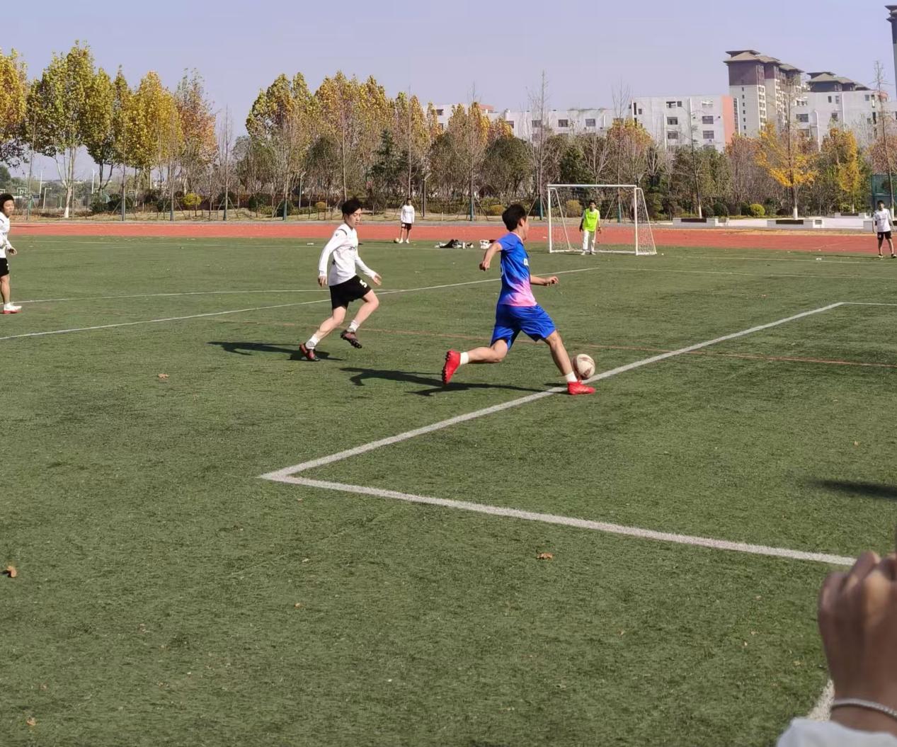 在足球项目决赛之日,商学院与经管学院展开激烈交锋。开场阶段,商学院迅速进入状态,凭借精准配合与凌厉进攻取得领先。比赛进入关键阶段,商学院队员在全场观众的呐喊助威中连续得分。终场哨响,商学院以2:1战胜经管学院,赢得胜利,摘得本届体育文化节桂冠。