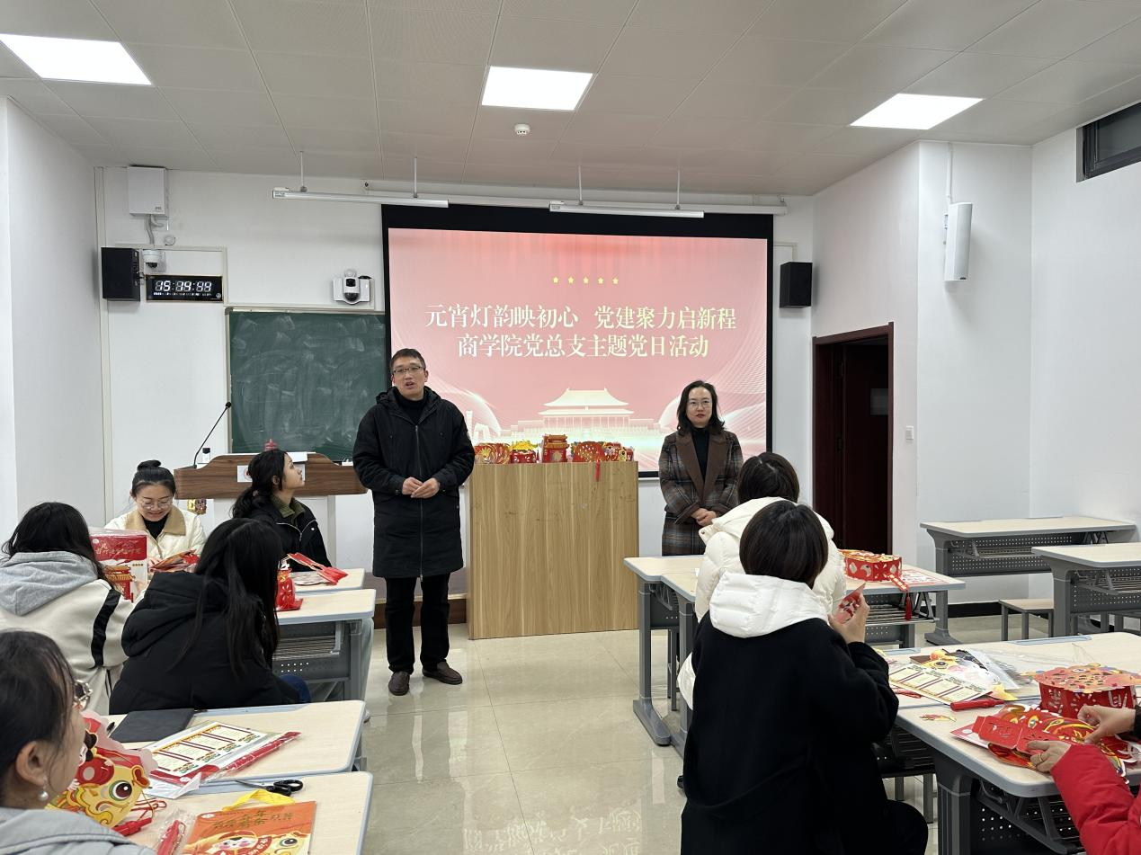 为弘扬中华优秀传统文化,推动思政教育与传统节日深度融合。3月3日,商学院党总支开展“元宵灯韵映初心 党建聚力启新程”主题党日活动,本次活动由党总支书记荆伟科主持,全体党员教师和部分入党积极分子参加。