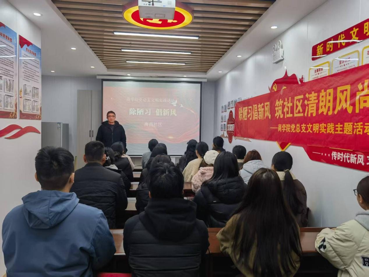 为深入推进移风易俗工作,弘扬文明健康、绿色环保的生活方式。3月6日,商学院党总支赴海西社区开展“除陋习倡新风 筑社区清朗风尚”文明实践主题活动。