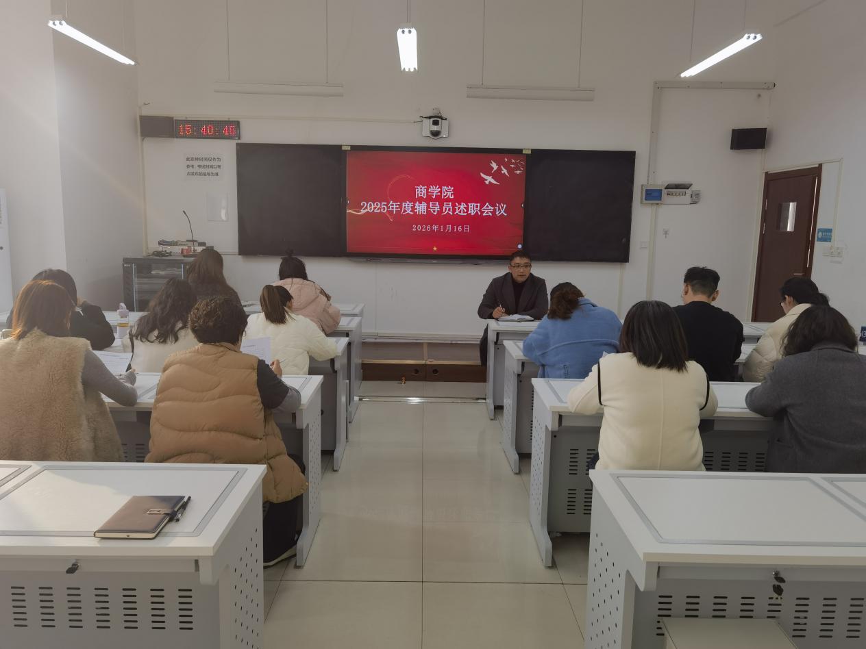 为全面总结2025年度学生工作成效与经验,精准查摆辅导员履职中的短板不足,2026年1月16日,商学院召开2025年度辅导员述职会议。会议由商学院党总支书记荆伟科主持,全体专兼职辅导员参加。