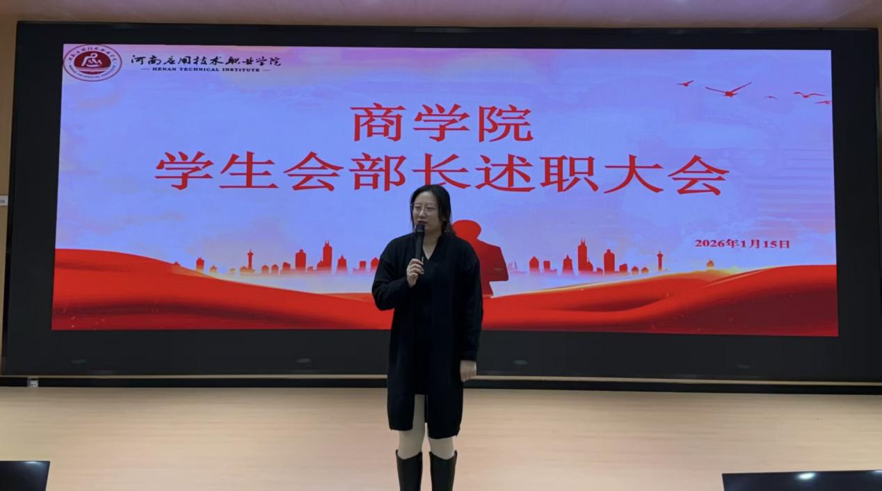 回望耕耘路,奋进新征程。为夯实学生工作根基,明晰责任使命,凝聚奋进合力,2026年1月15日,商学院于D102会议室召开学生会干部述职会。学院团总支书记贺苗苗、学生会主席团成员、各部门部长及骨干成员齐聚一堂,共话履职成效,共商发展新篇。