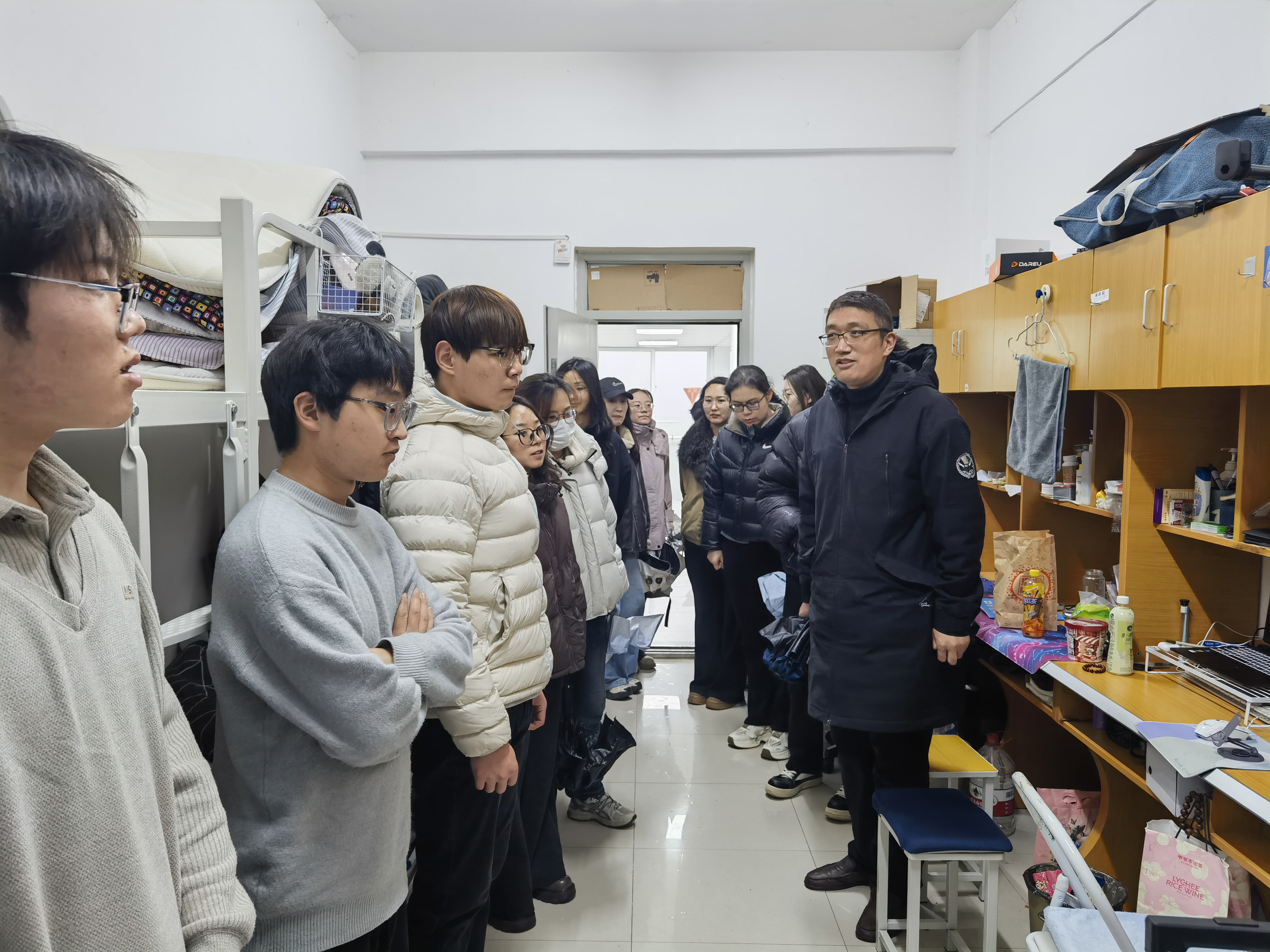 为打造安全、整洁、温馨的住宿环境,商学院书记荆伟科带领辅导员深入学生宿舍,开展全覆盖式查寝。检查重点围绕宿舍卫生、用电安全及设施完好度,同时与学生暖心沟通,细致了解大家返校后的生活需求与心理状态,倡导大家养成良好生活习惯,共同营造和谐文明的宿舍环境。