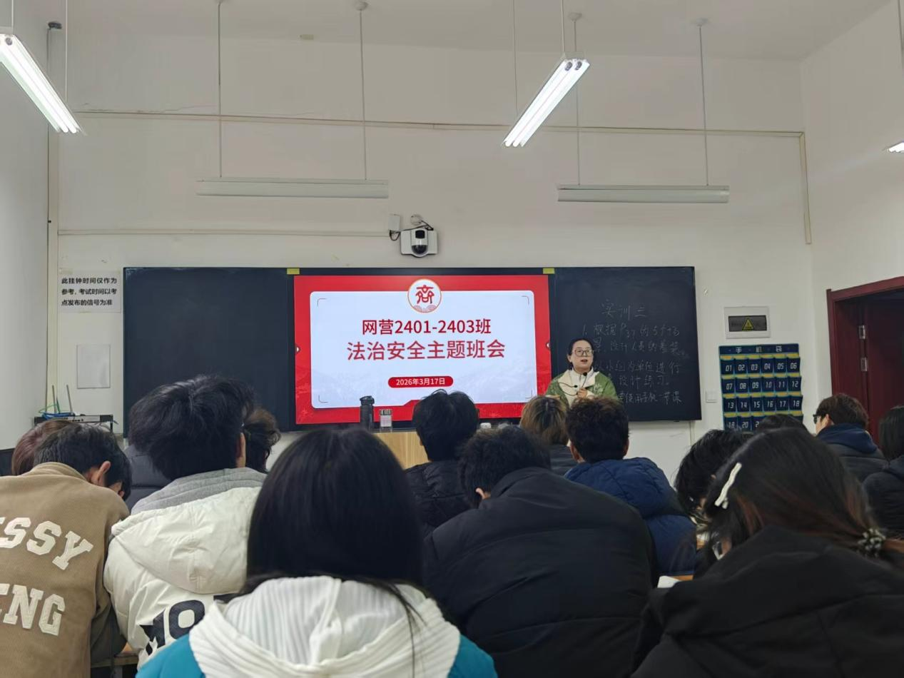 为落实学校2026年春季开学法治宣传教育工作部署,强化全院学生规则意识与法治观念。近期,商学院组织全体在校班级召开“法治宣传教育”主题班会,以普法教育与校规学习为抓手,引导商科学子知敬畏、守底线、明规矩。