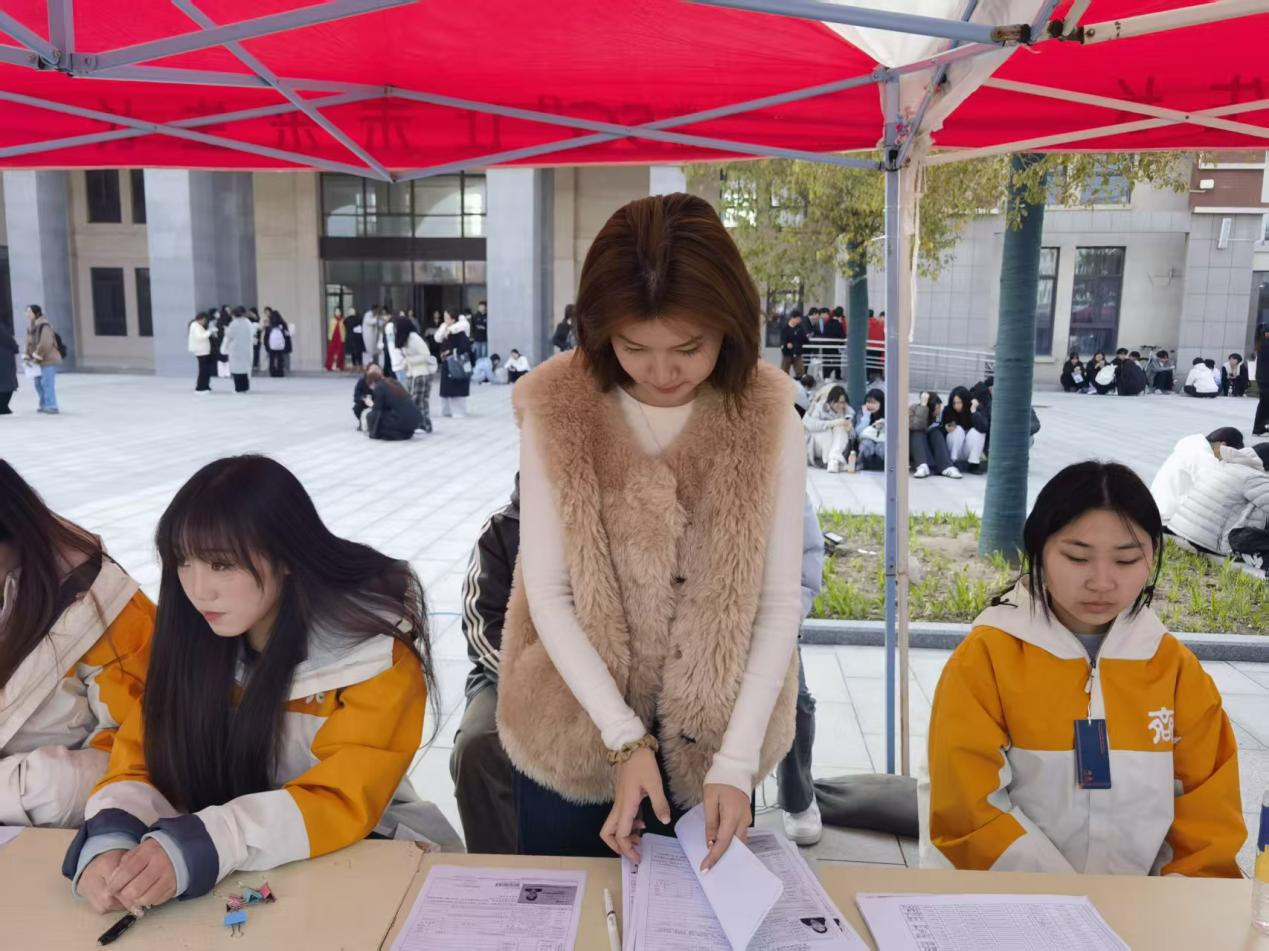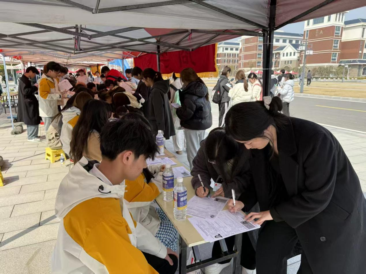 现场,学校在校园广场设立了暖心助考服务点,老师们与志愿者们早早就位,为考生们提供全方位的考前服务。老师们为考生发放准考证,志愿者们耐心引导考生熟悉考场流程,同时细致解答考试相关疑问,用热情服务营造出轻松温暖的备考氛围。
