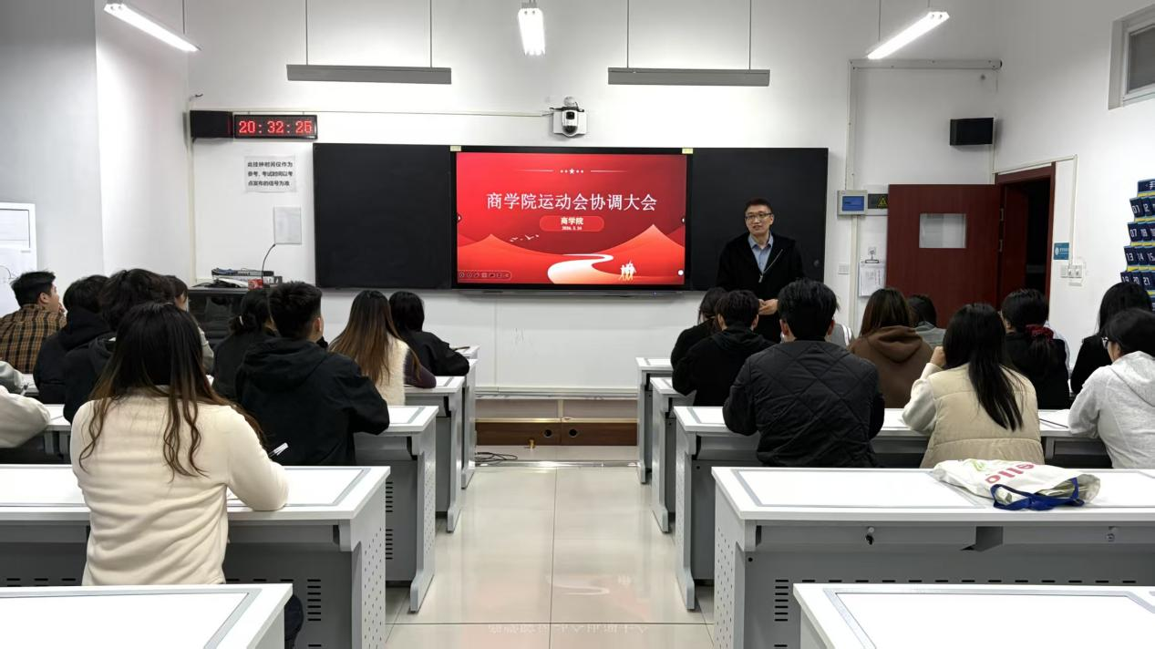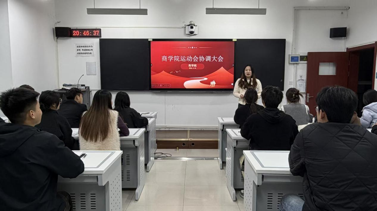 为进一步凝聚学生体育精神,保障学院运动会各项工作有序开展,切实提升学生身体素质与团队协作能力,3月24日,商学院组织召开第五周学生会干部主题例会,党总支书记荆伟科出席,会议由团总支书记贺苗苗主持。本次会议聚焦运动会各项事宜。