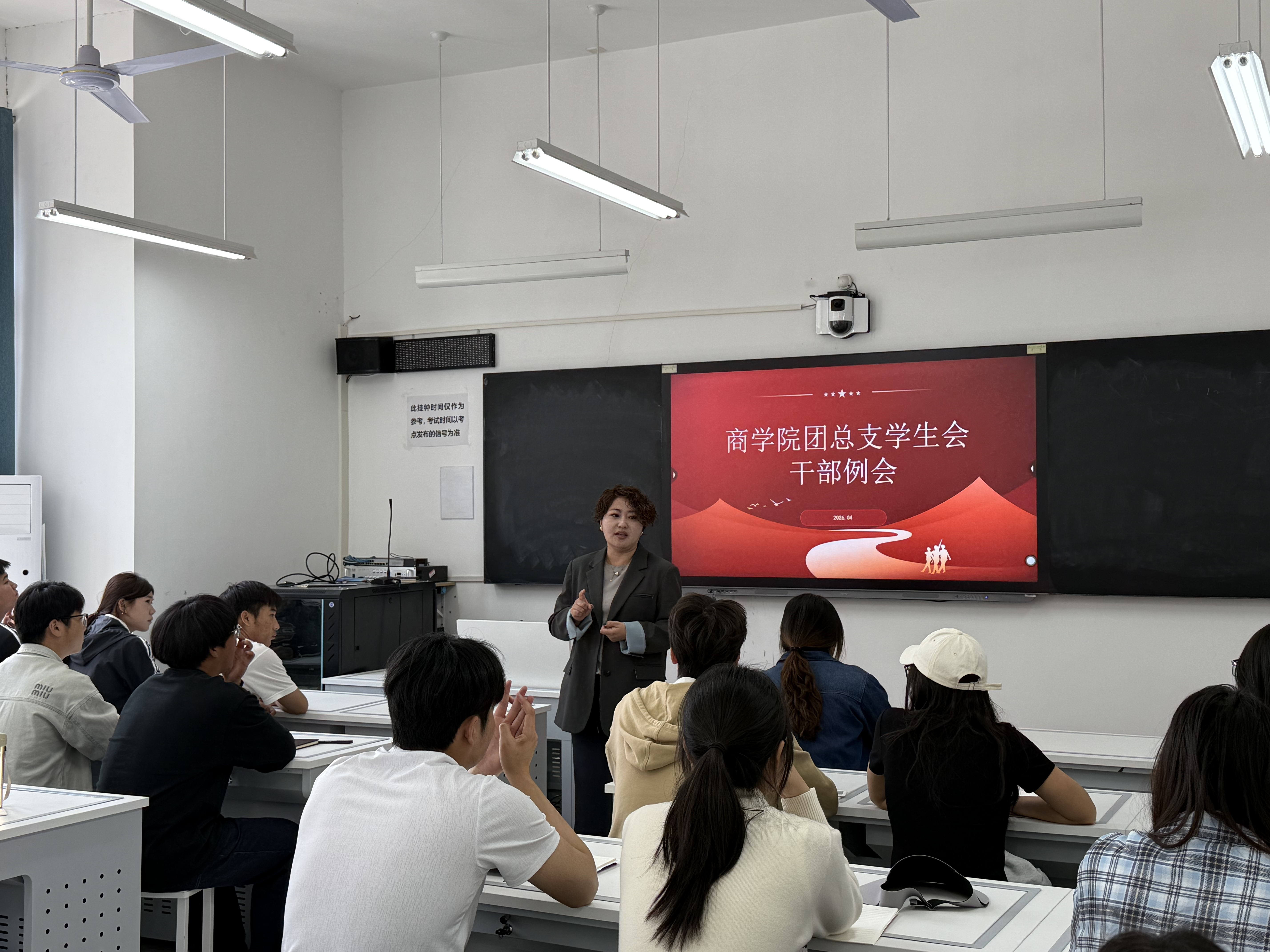 为总结商学院学生会近期工作,明确后续工作方向,凝聚干部合力,进一步发挥学生会桥梁纽带作用,4月23日,商学院学生会干部例会在E106教室召开,商学院团总支书记贺苗苗、专职辅导员庞轶老师出席会议,全体学生会干部参会。