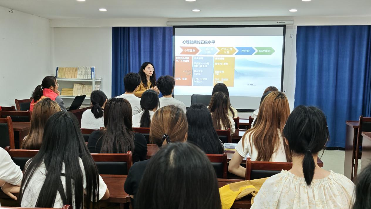 活动开始,主持人首先向同学们详细介绍了心理健康的五级水平,帮助同学们系统认识心理健康状态,建立科学的心理健康认知。主持人通过进行趣味问答快速活跃气氛,志愿者们围绕心理健康状态、情绪调节等内容开展心理健康问答互动交流。