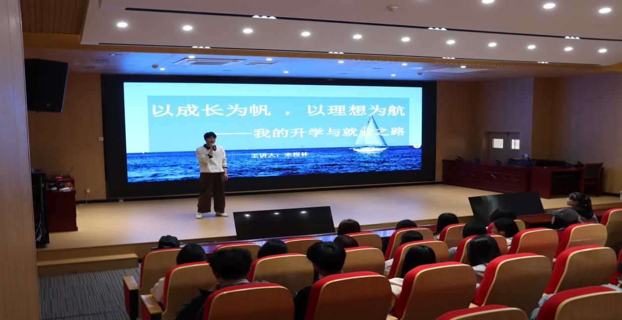 讲座现场,宋程林校友结合自身经历,从专升本备考技巧、大学期间的能力提升、职场初体验以及考研规划等多个方面,为同学们提供了全面且实用的建议。他鼓励大家要树立明确目标,合理规划大学生活,珍惜时光,努力提升自己的综合素质。同时,面对困难与挫折时,要保持积极乐观的心态,勇于拼搏,敢于尝试。